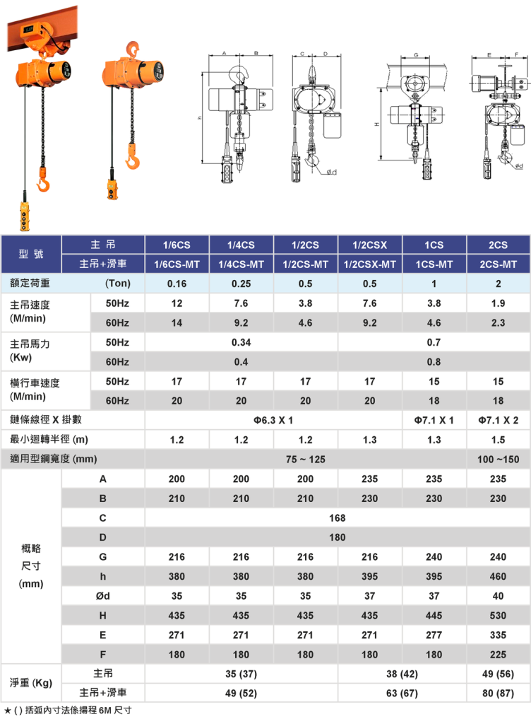CS 超短型 鏈條吊車 (160Kg~2噸 , 1Hp單速)