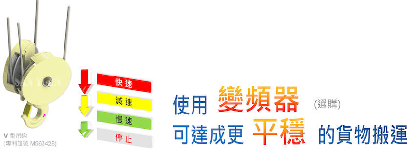 - 透過變極馬達可達成經濟的捲揚雙速選擇。