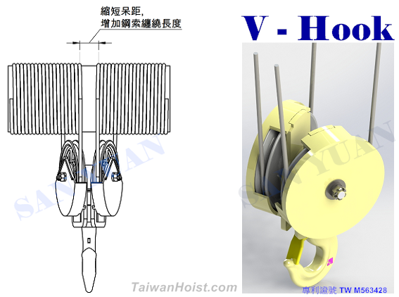►可使捲筒上鋼索捲收長度最大化,並使鋼索捲入捲筒之角度適配。