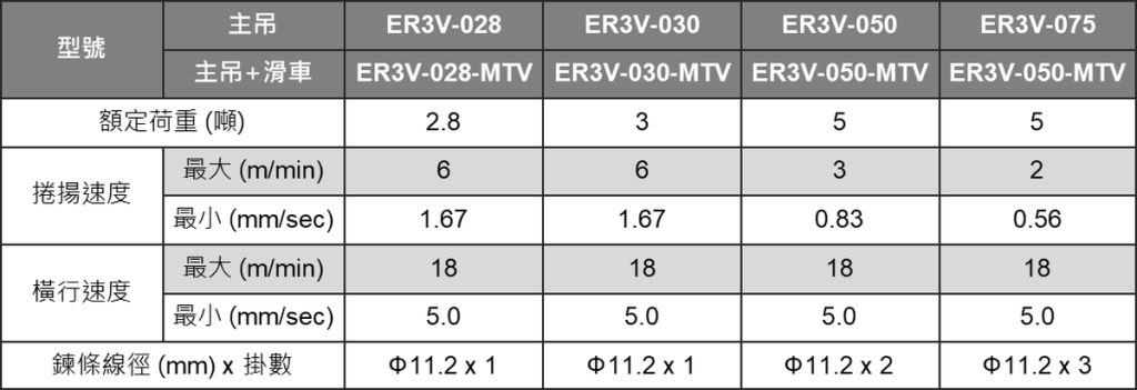 ER3V 大容量型- 變頻速控型 電動鏈條吊車 (日規)