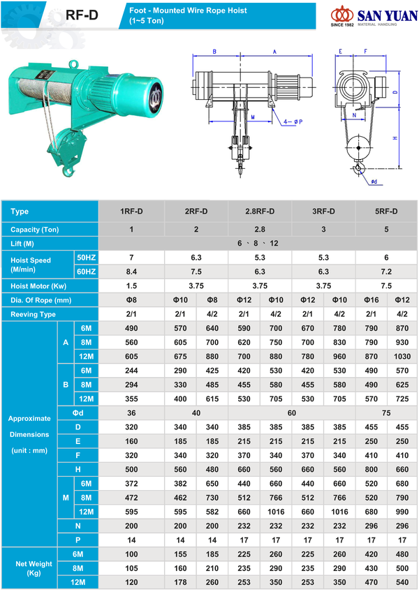 RF-D Foot - Mounted Wire Rope Hoist