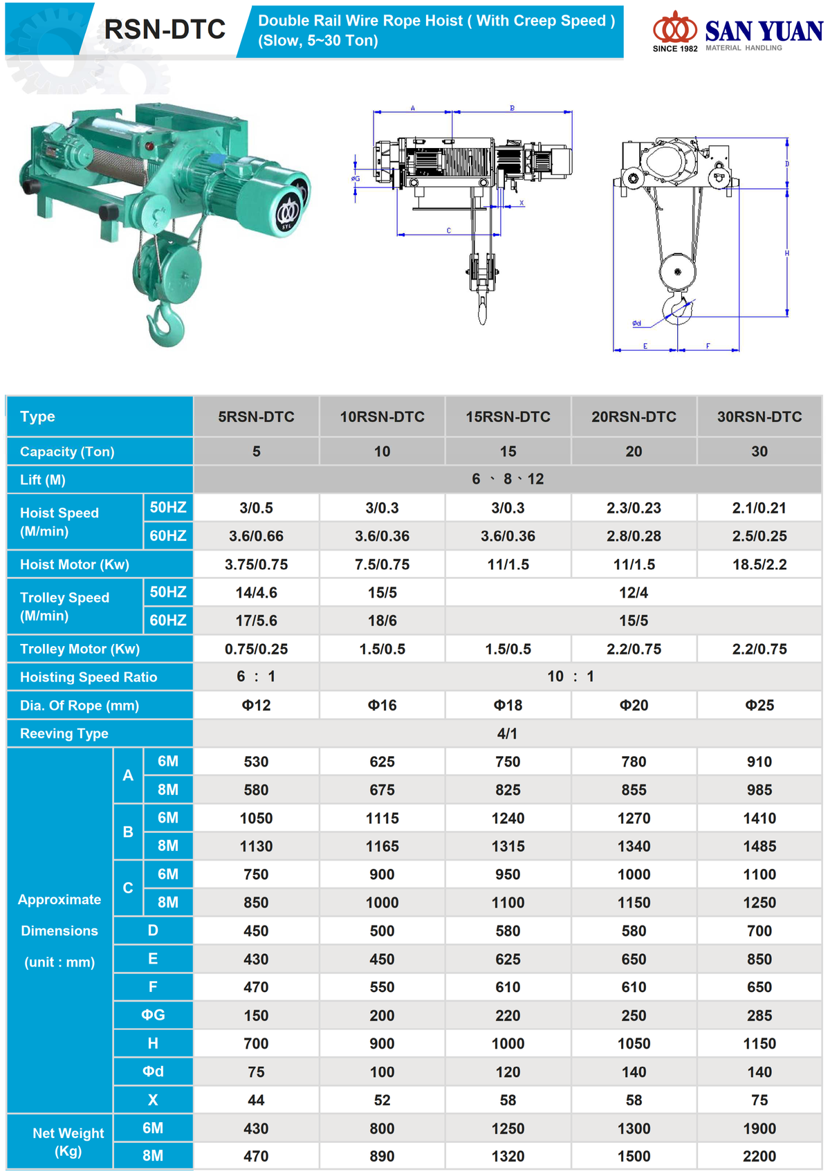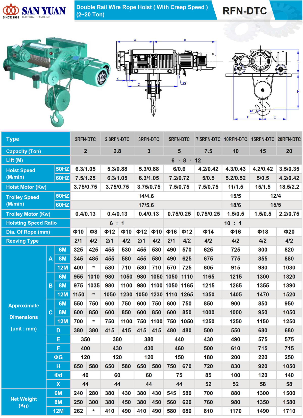 Dual-speed main crane model: Dual-motor RFN mechanism, variable frequency dual-speed electric crane.