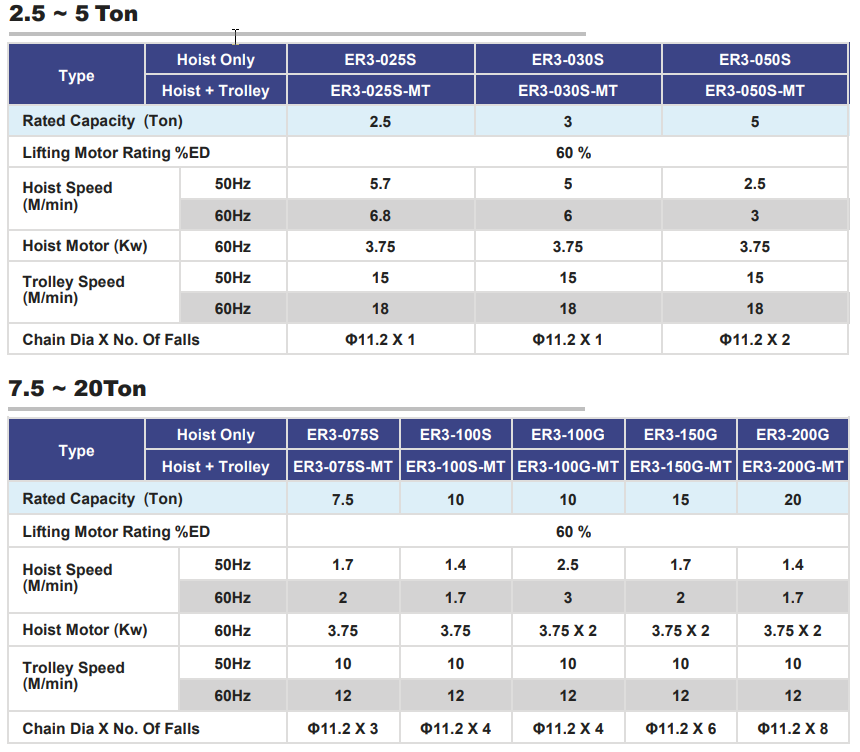 ► 5-Ton Monorail Type (Type: ER3-050S-MTS)