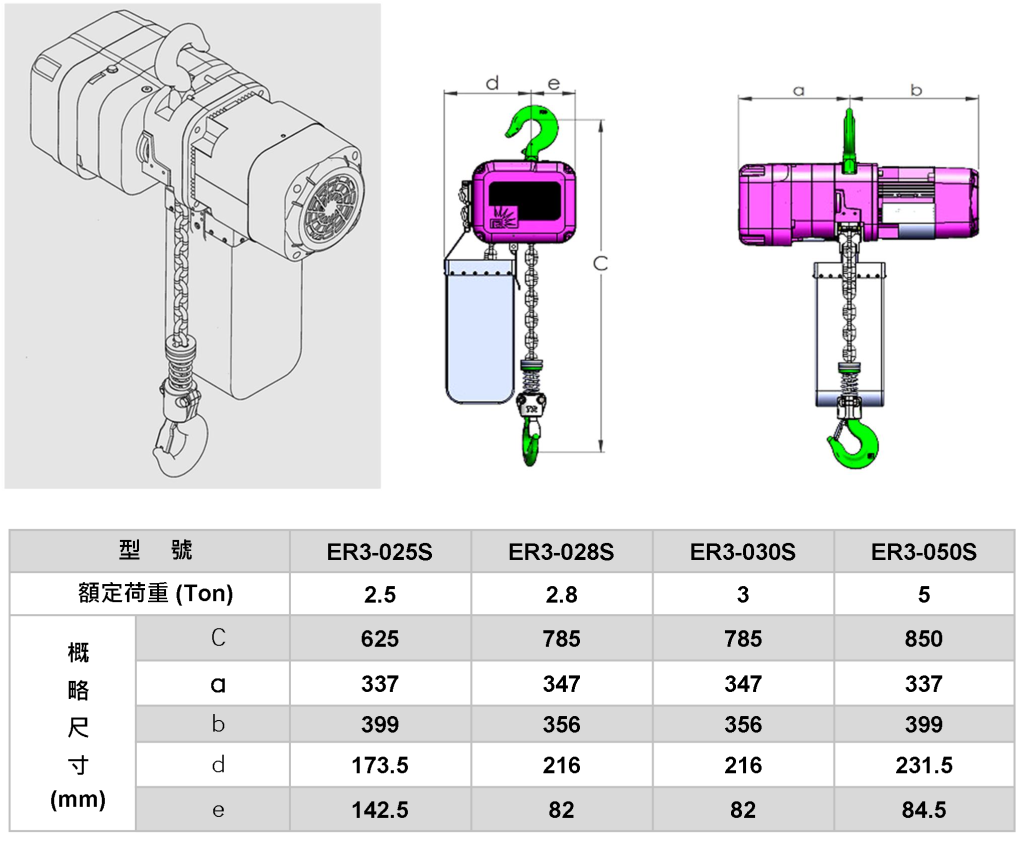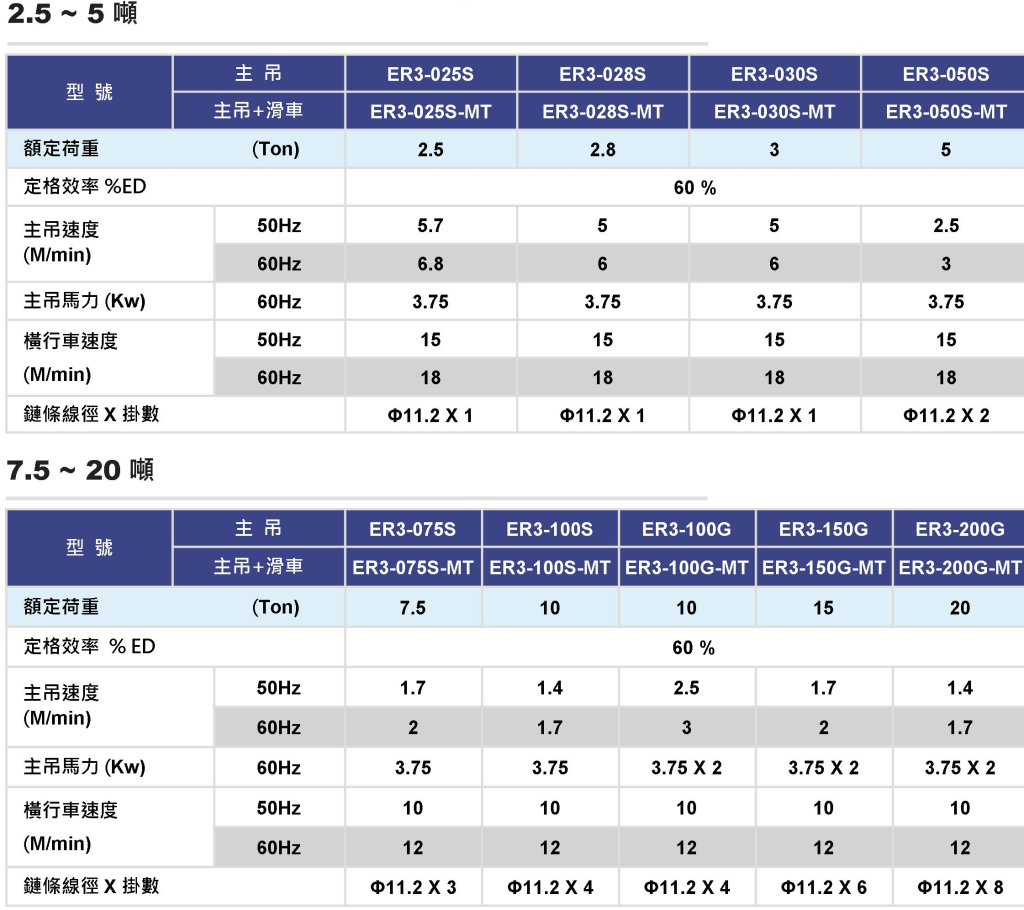 ER3 Type大容量型 (>2.5噸, 單速-標準, 變頻速控:選購)